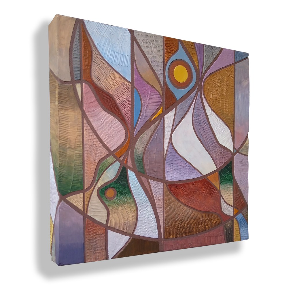 đź”´SOLD 10″ X 10″ X 2″ Acrylic on Canvas. This is the third in a short series of smallish square canvases Contrasting Earthy slate stone colors and textures with blue (in this case off whites too). The attempt was to produce a canvas that actually appears larger than it’s physical dimensions.