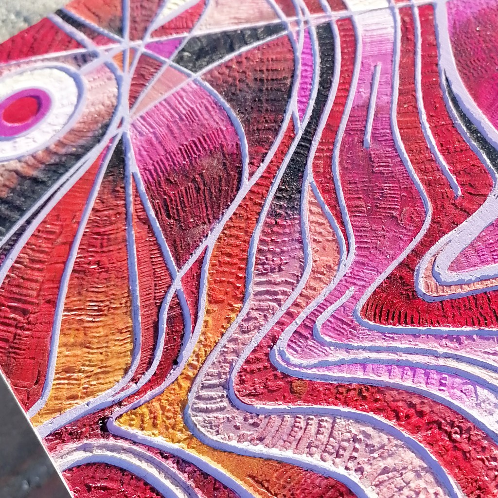 February 14, 2021March 10, 2021 AGATE ROJO (red agate) đź”´SOLD This is a series based on Agate stone and is the 3rd of 5 panels. Medium is Acrylic on cypress panel 10″X10″X 1.357″ Front view Perspective View detail Share this: Click to share on Facebook (Opens in new window) Facebook Click to share on X (Opens in new window) X Like Loading... Related