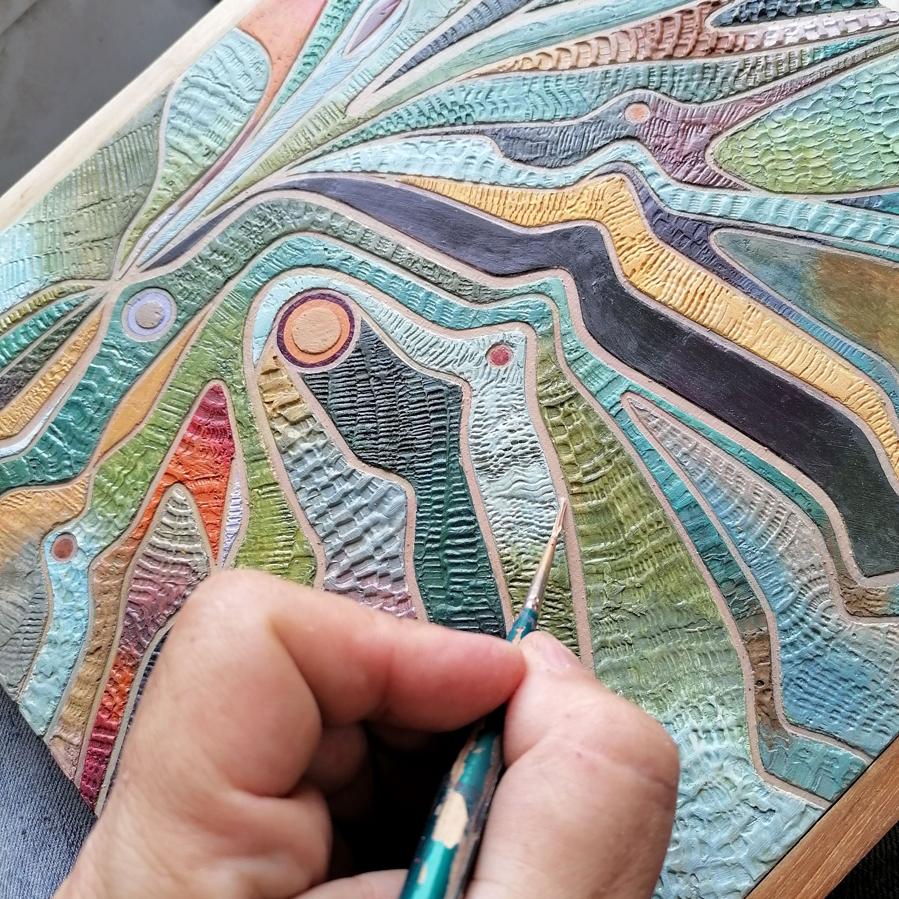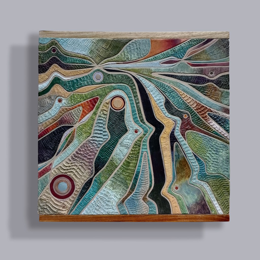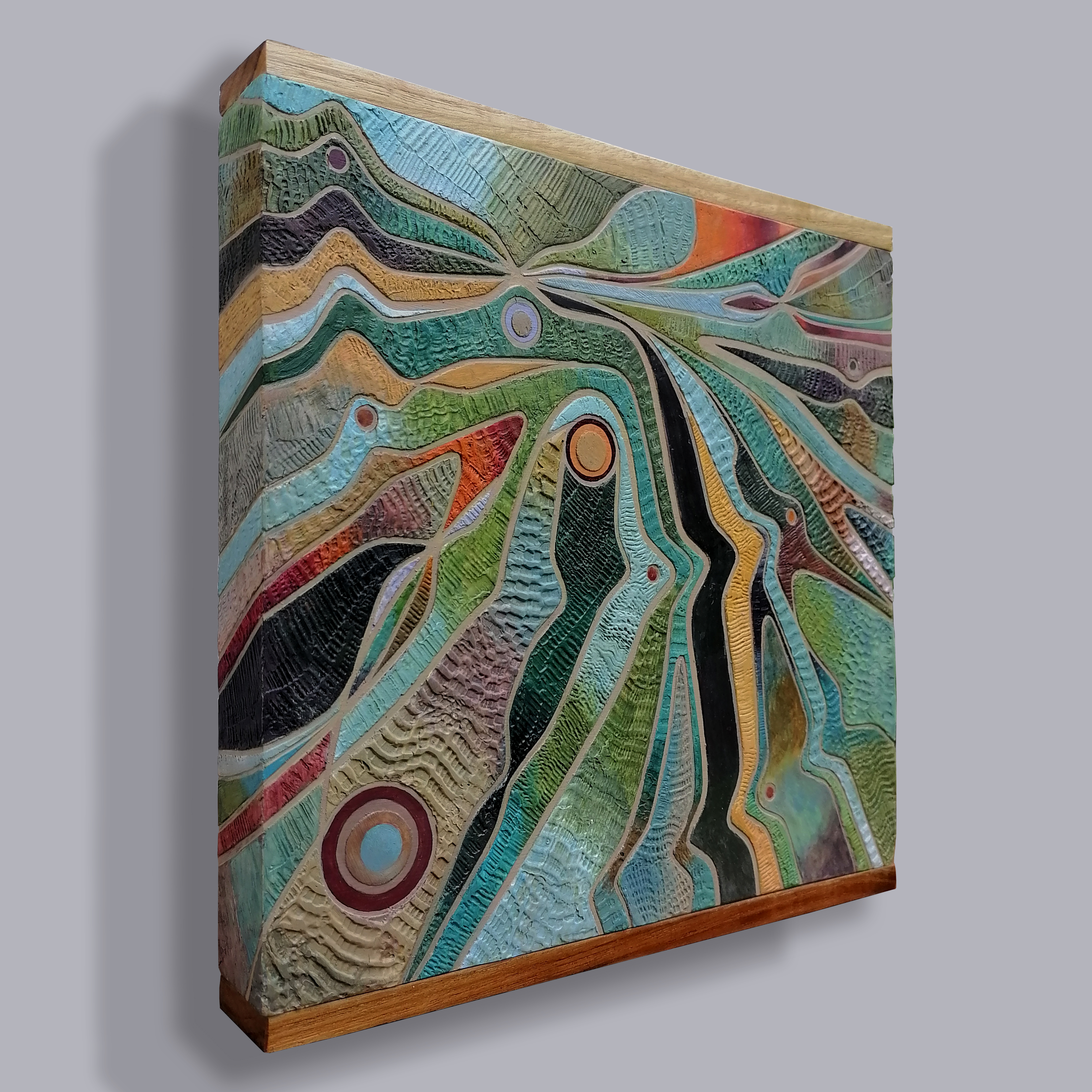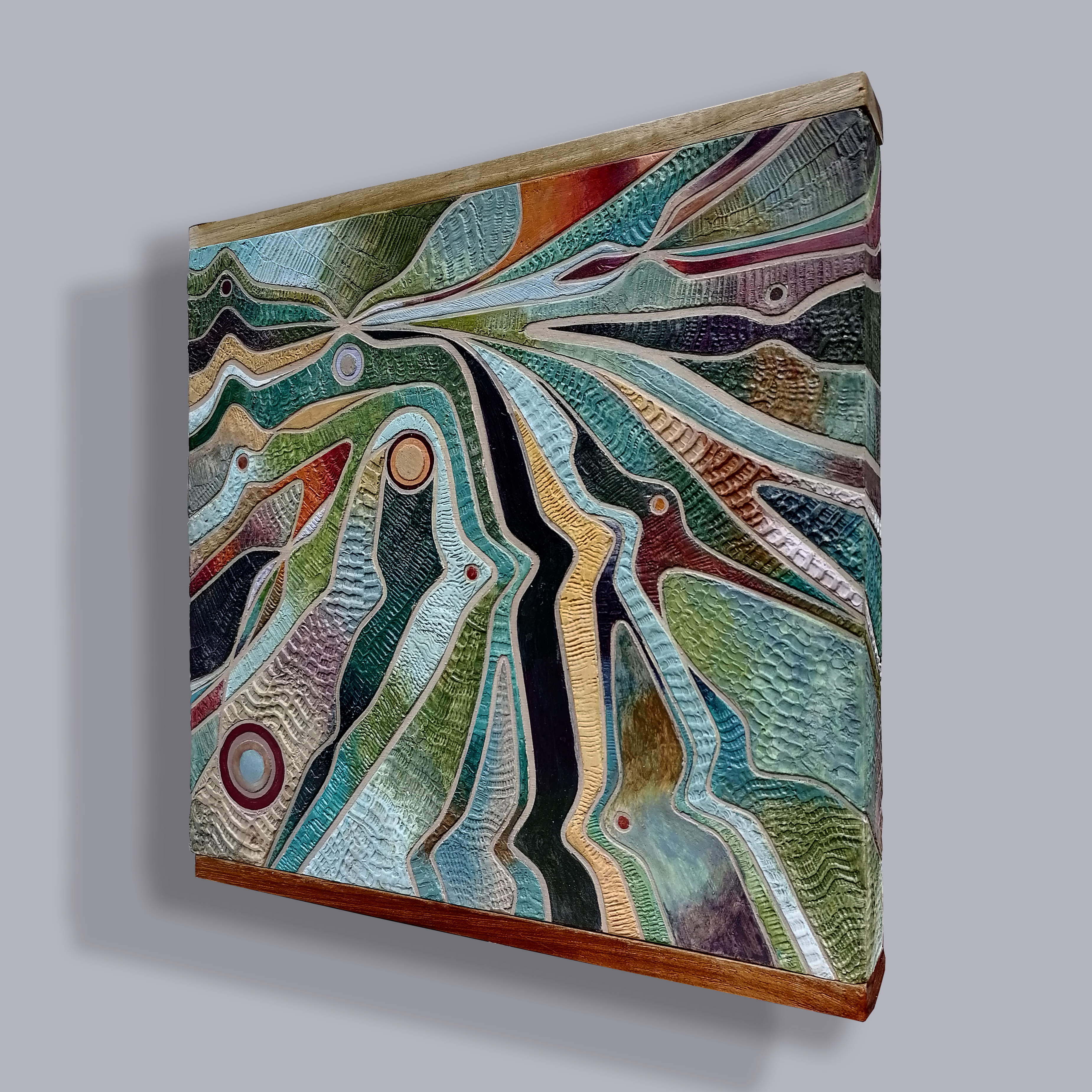 1. Neither have I. The need arose given that smaller works are often hung in clusters and different heights as opposed to larger works at eye level in which the tops and bottoms are usually not visible. I also wanted as little interference with the texturing on the sides of the panels as posible. For me it’s elegant and simple a framing solution.