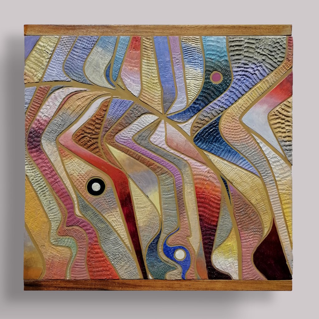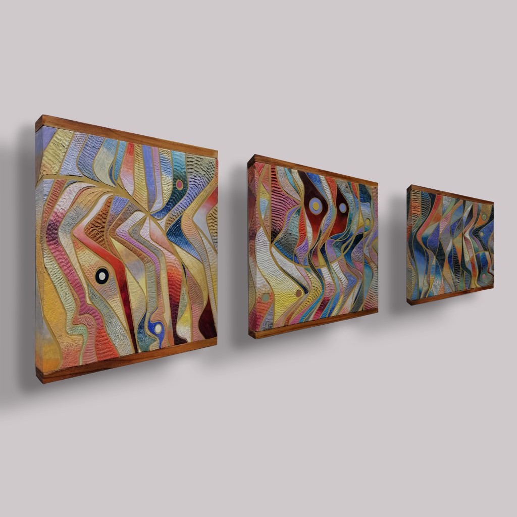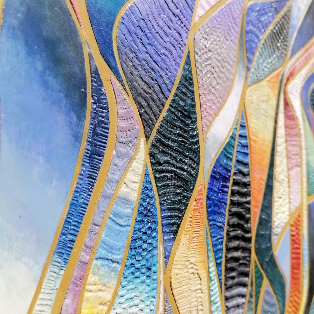 October 25, 2021January 16, 2024 Echoes and Offsets Triptych #1 đź”´SOLD 12″ X 46″ X 1.5″ Acrylic and Modelling paste on cypress panel .A series of opposing waves composed in contrasting warm and cool color values AVAILABLE $1100+SHIPPING perspective view frontal view panel #1 panel #2 panel #3 detail 1 detail 2 Share this: Click to share on Facebook (Opens in new window) Facebook Click to share on X (Opens in new window) X Like Loading... Related