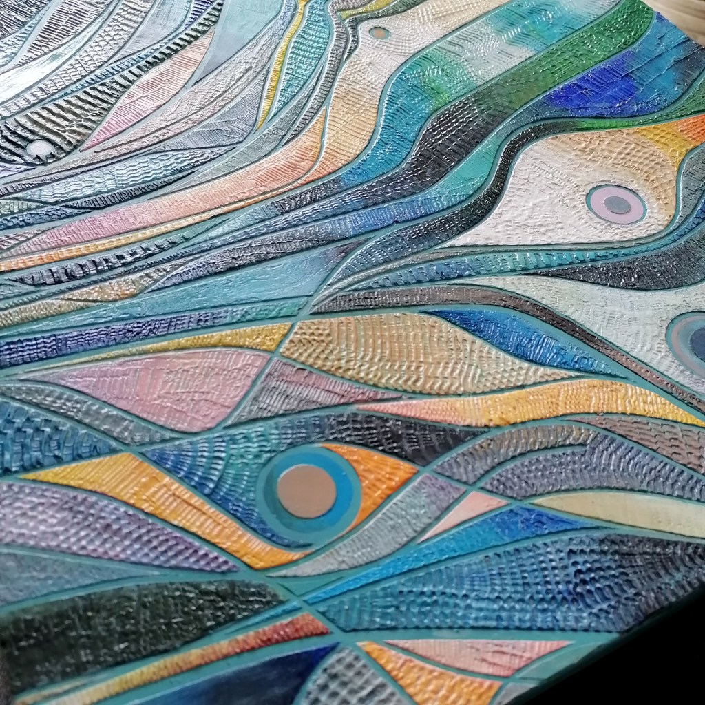 November 14, 2021November 16, 2021 Ocean #4 16″ X 16″ X 1.75 Acrylic and modeling paste on canvas. These works address the coloring and movement of ocean waves. AVAILABLE $550+SHIPPING frontal view perspective view detail 1 detail 2 Share this: Click to share on Facebook (Opens in new window) Facebook Click to share on X (Opens in new window) X Like Loading... Related