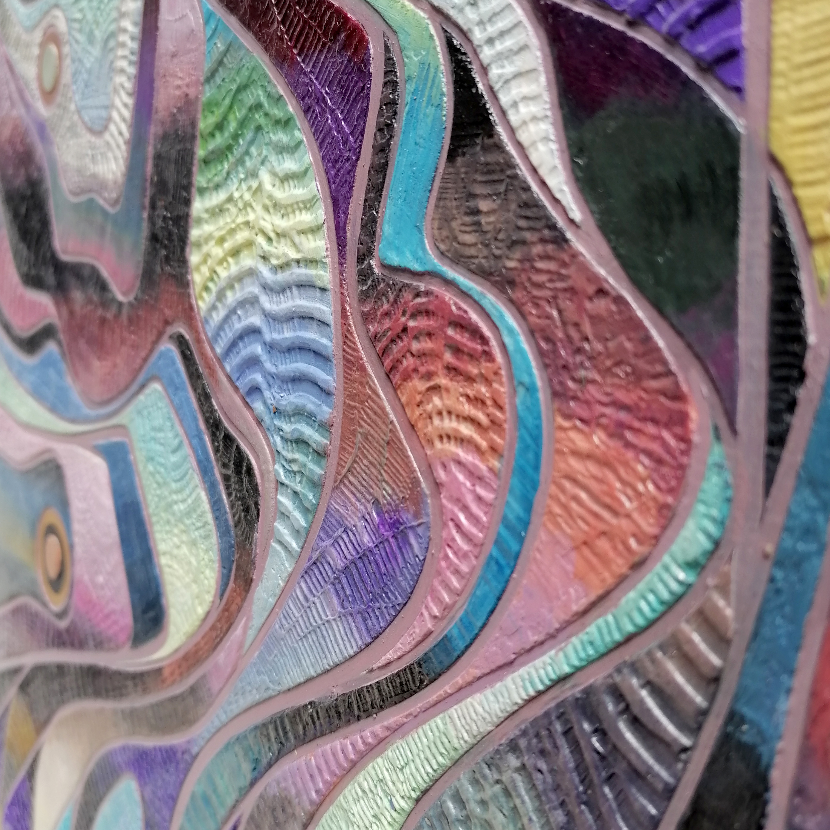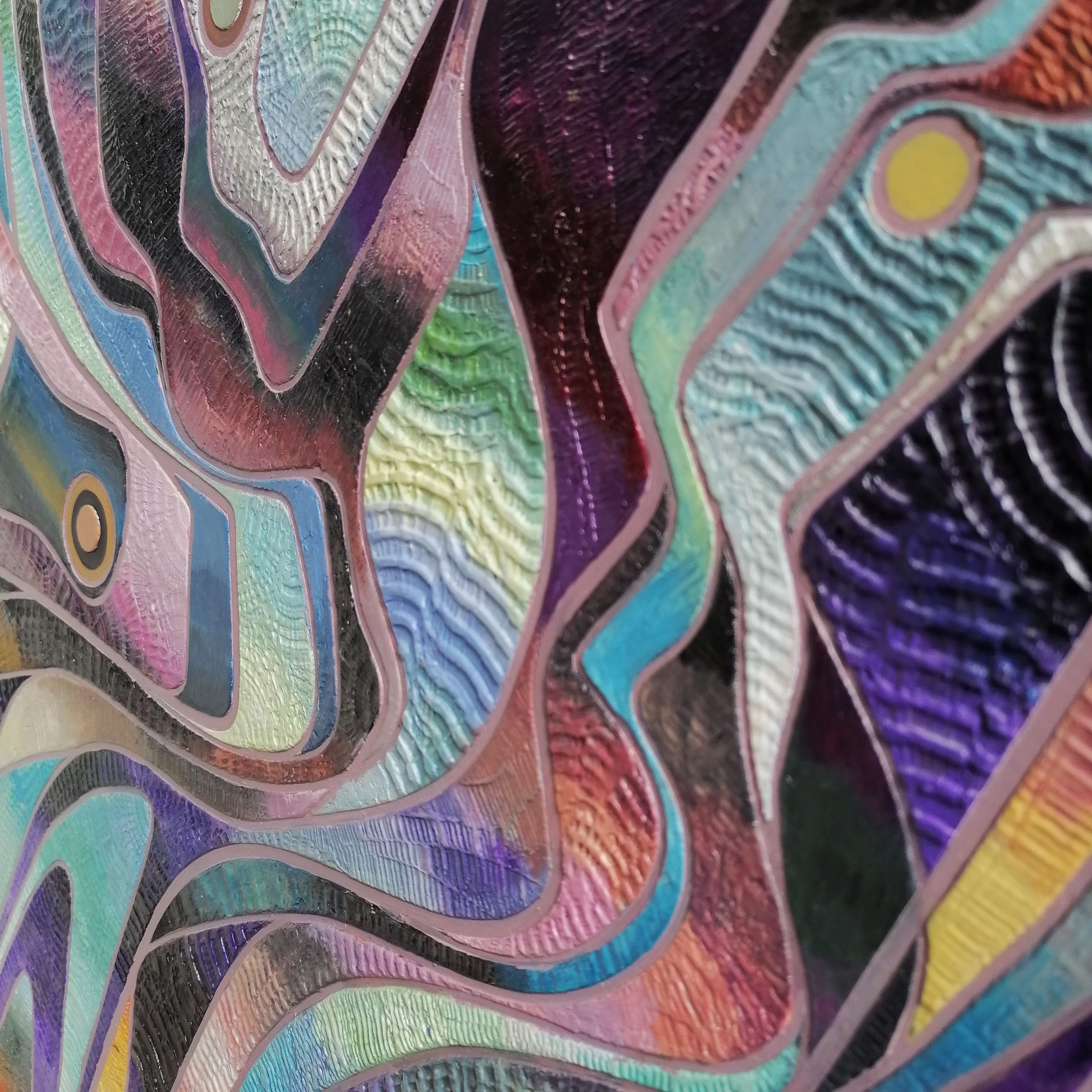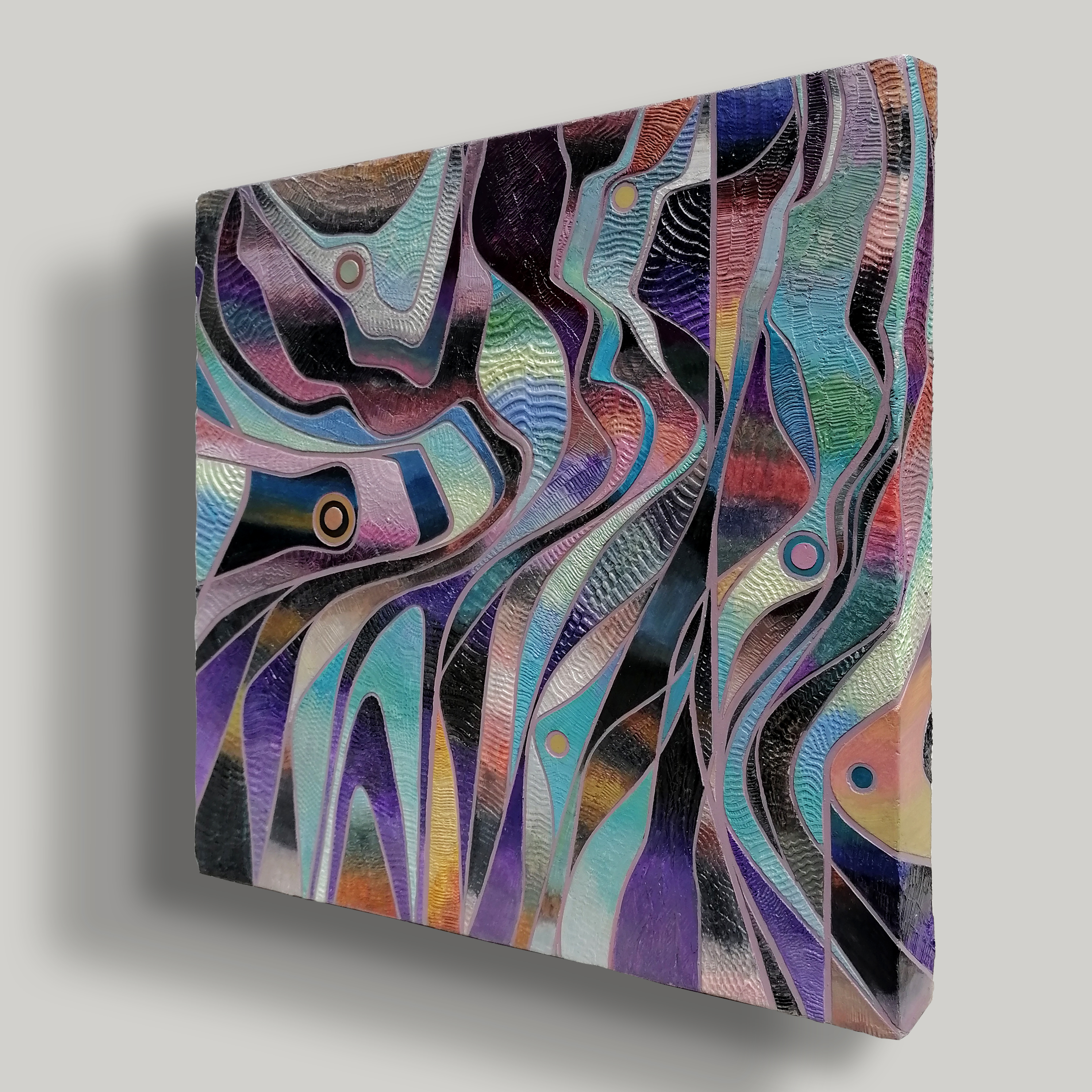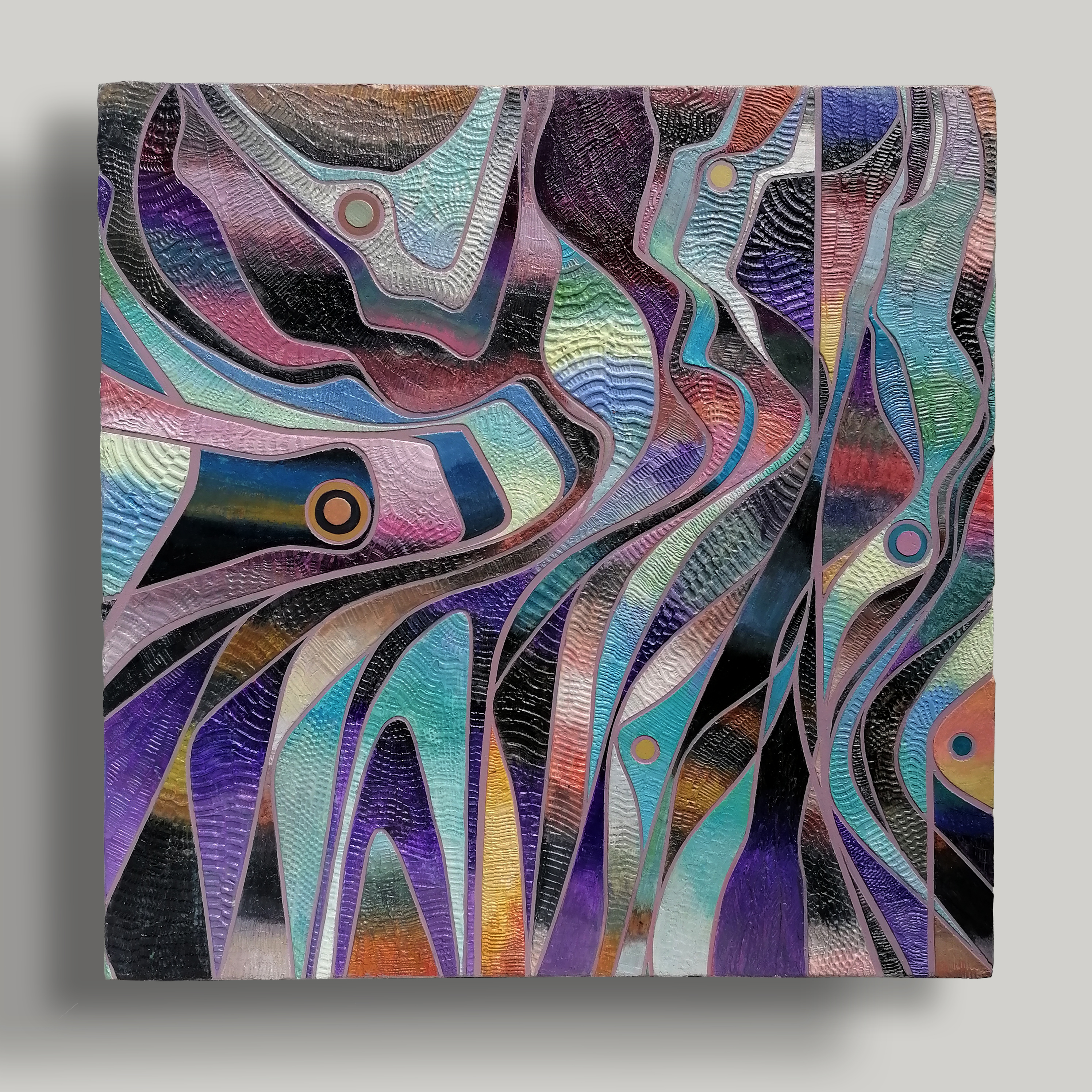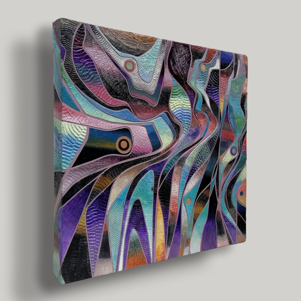 đź”´SOLD16″X16″X1.5″ Acrylic and Modelling paste on canvas. Freeform composition