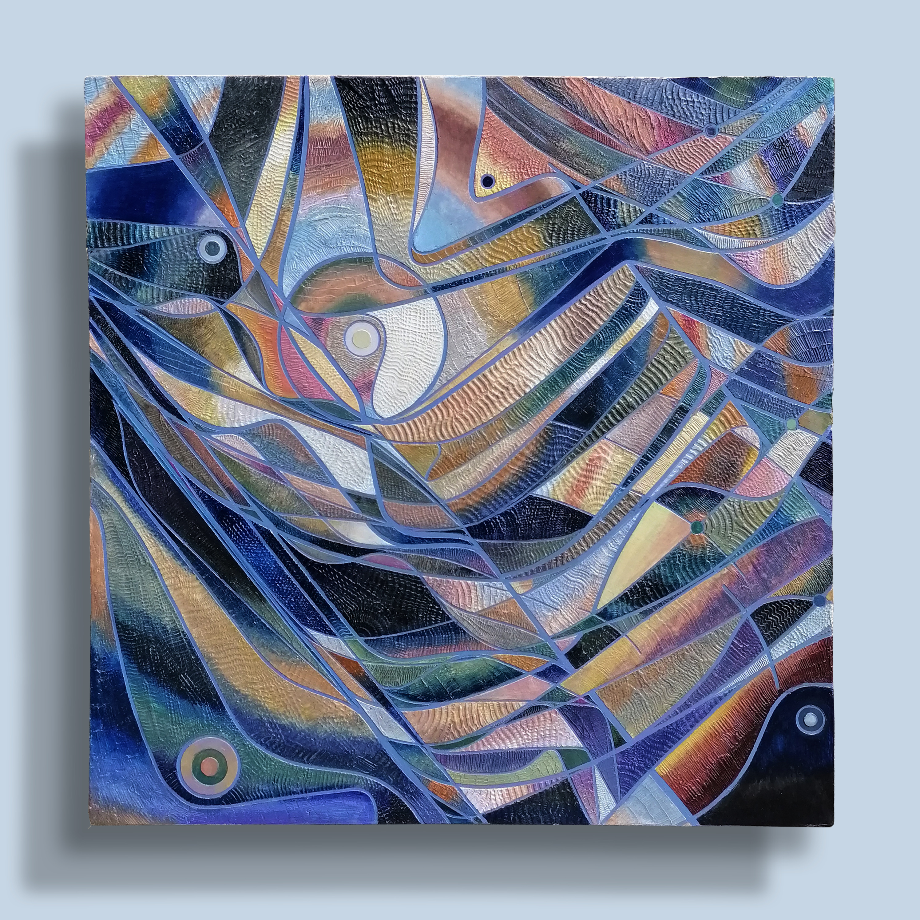 January 25, 2022 Nocturnal #5 24″ X 24″ X 1.75″ Acrylic and modeling paste on canvas. Painting based on a night sky. Share this: Click to share on Facebook (Opens in new window) Facebook Click to share on X (Opens in new window) X Like Loading... Related
