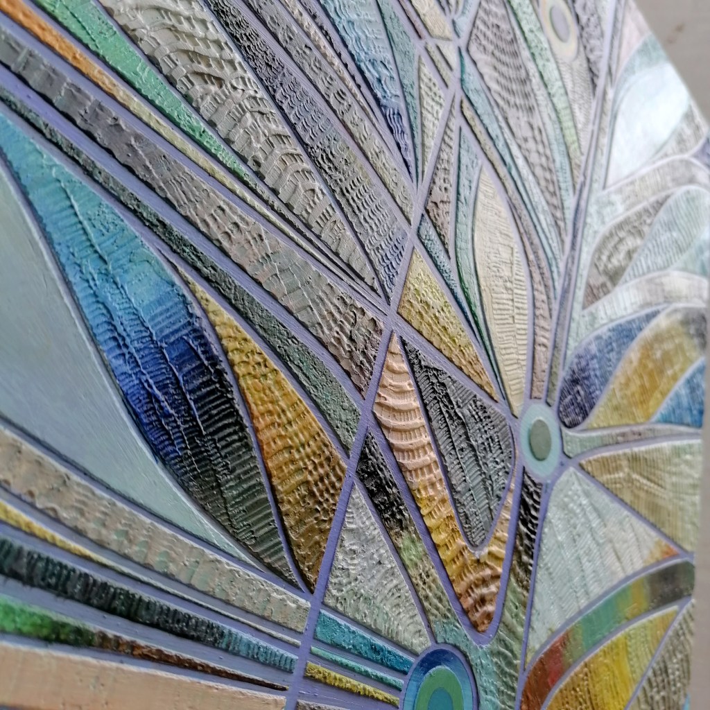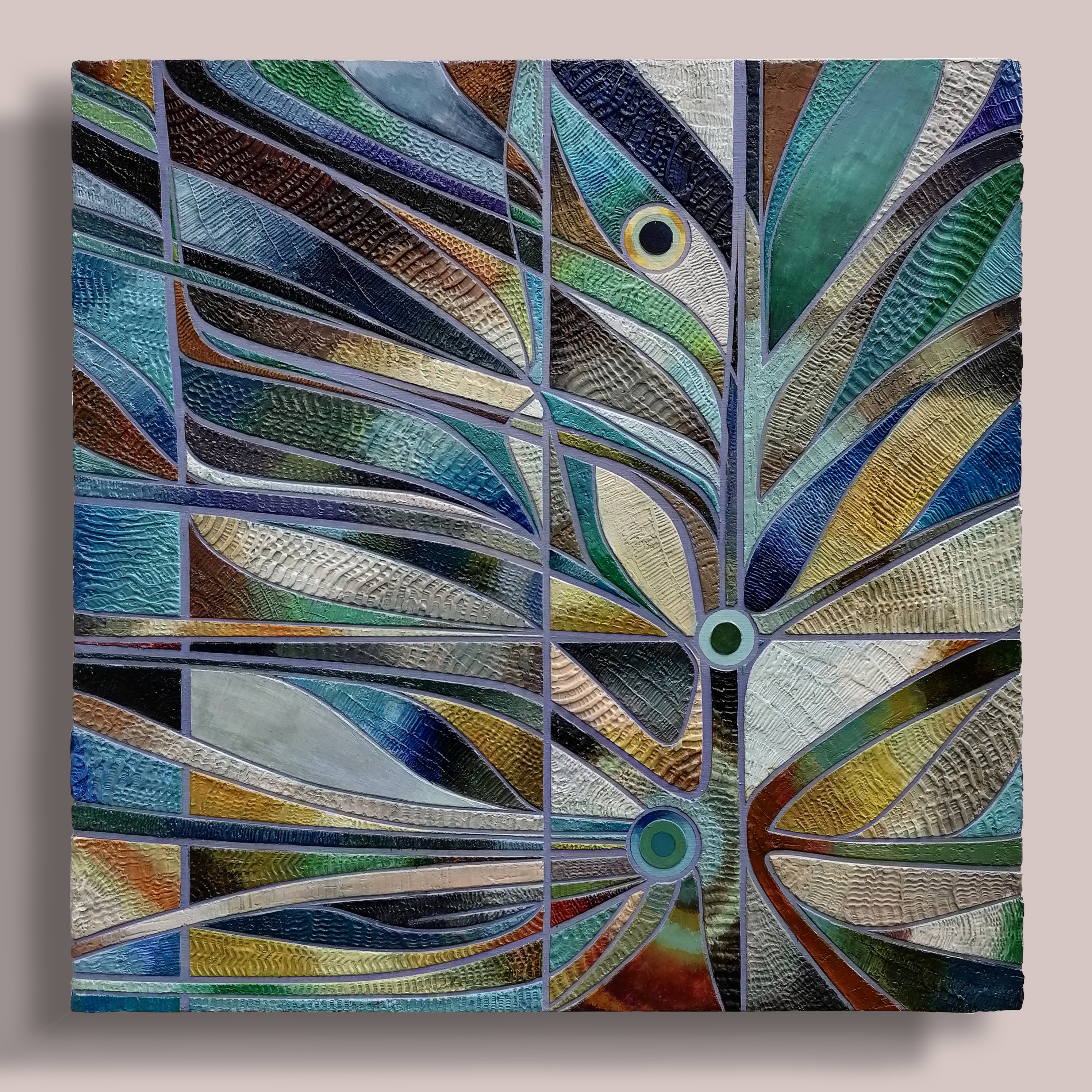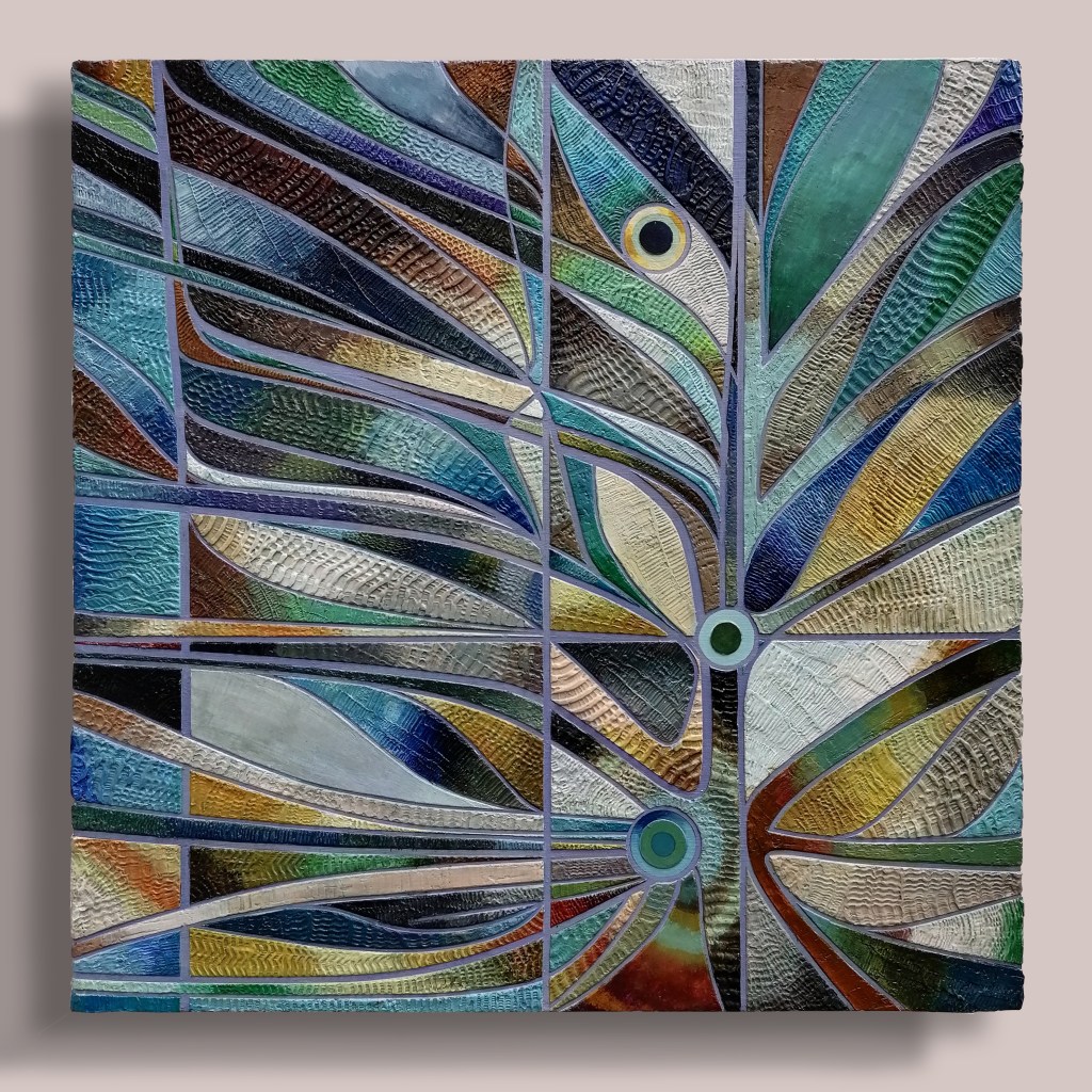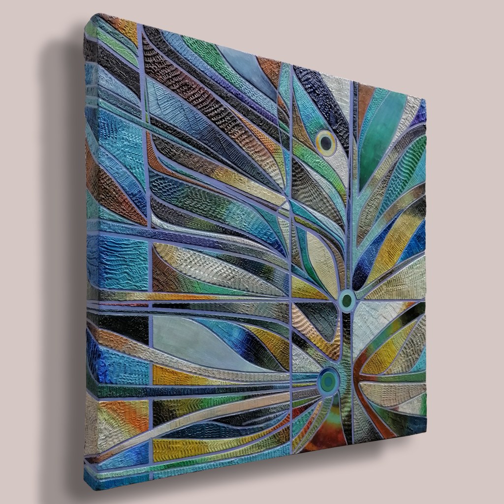 🔴SOLD 16″X16″X1.5″ Acrylic and modeling paste on canvas. Newer work continuing with more structured geometry incorporating cartesian grids and geometries that reflect them.