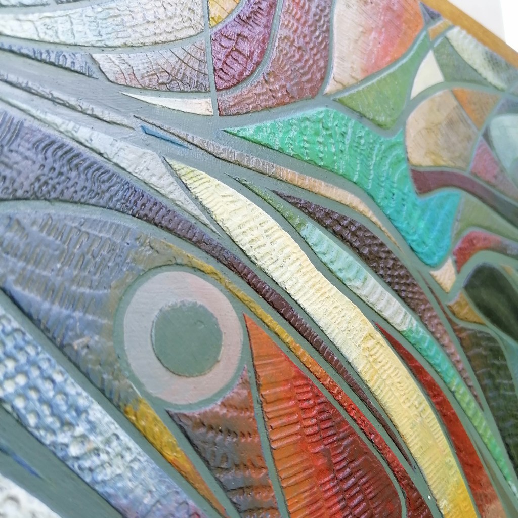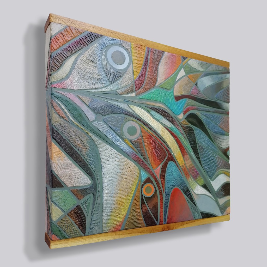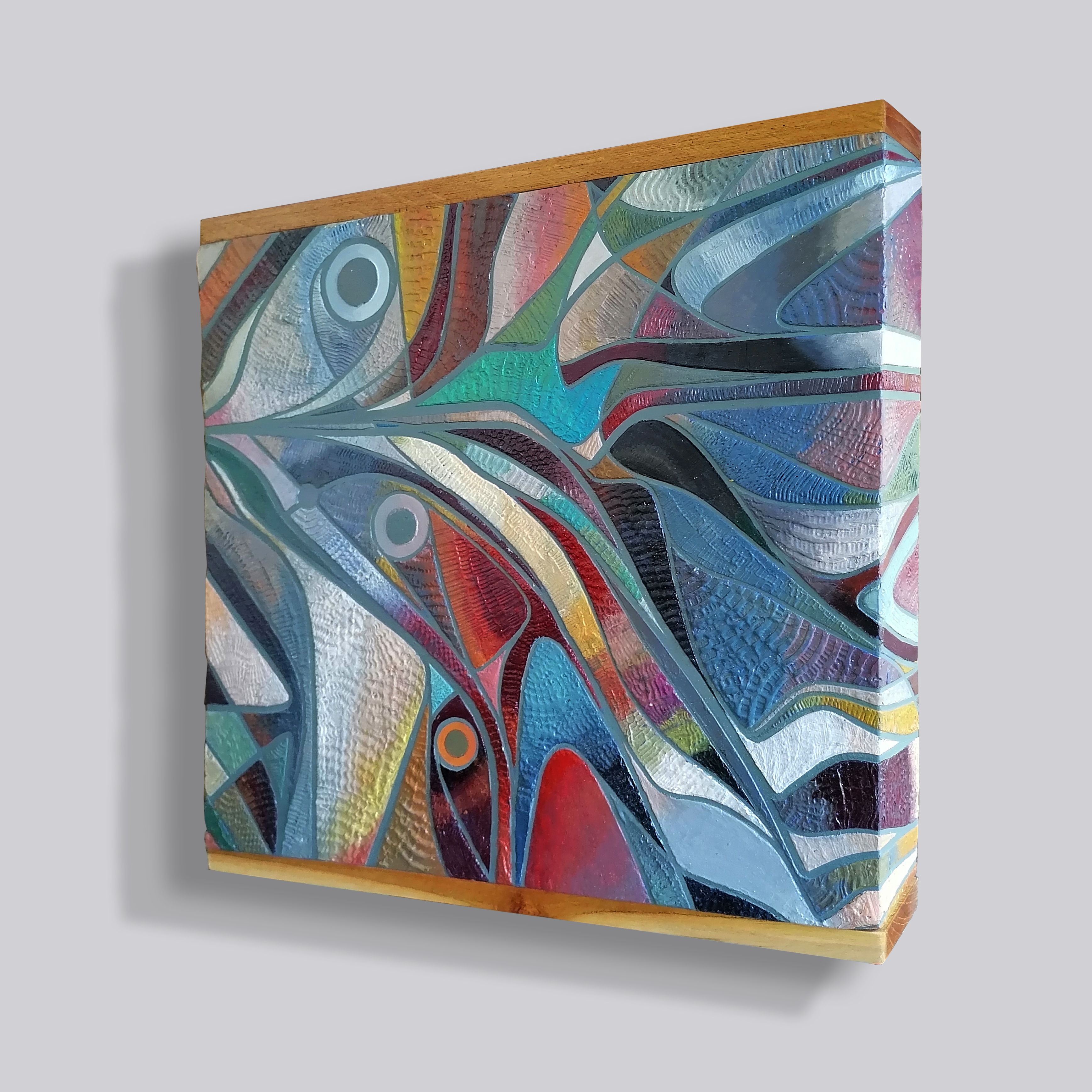 July 17, 2022January 16, 2024 Slate and Grey #1 đź”´SOLD 12″X12″X1.5″ Acrylic and Modeling paste on Cypress with Teak capping Contrasting saturated and desaturated colors in juxtaposition. Frontal View Left Perspective Right Perspective Detail Share this: Click to share on Facebook (Opens in new window) Facebook Click to share on X (Opens in new window) X Like Loading... Related