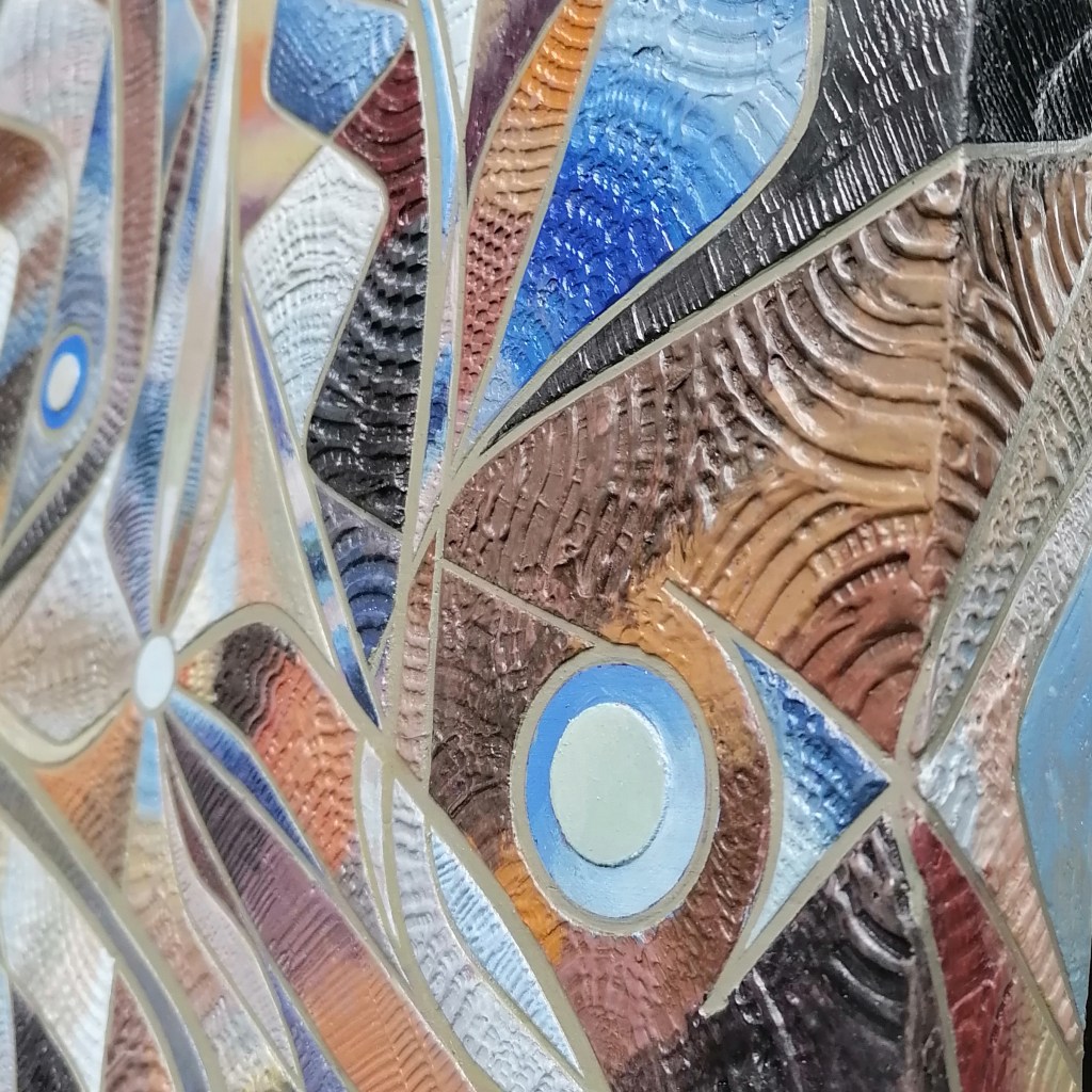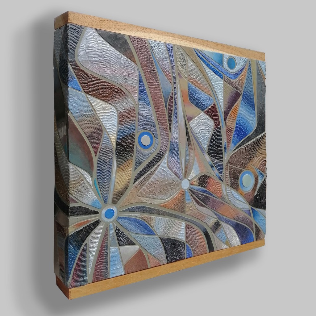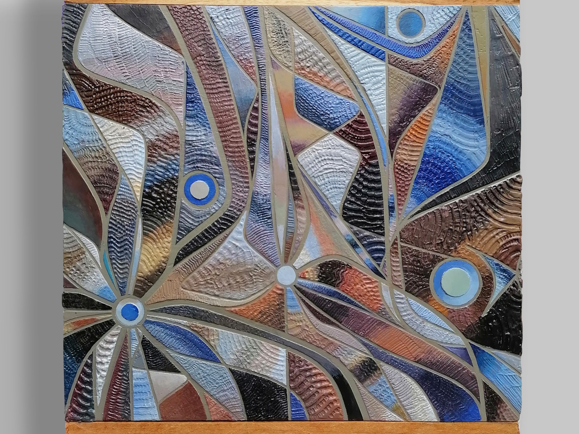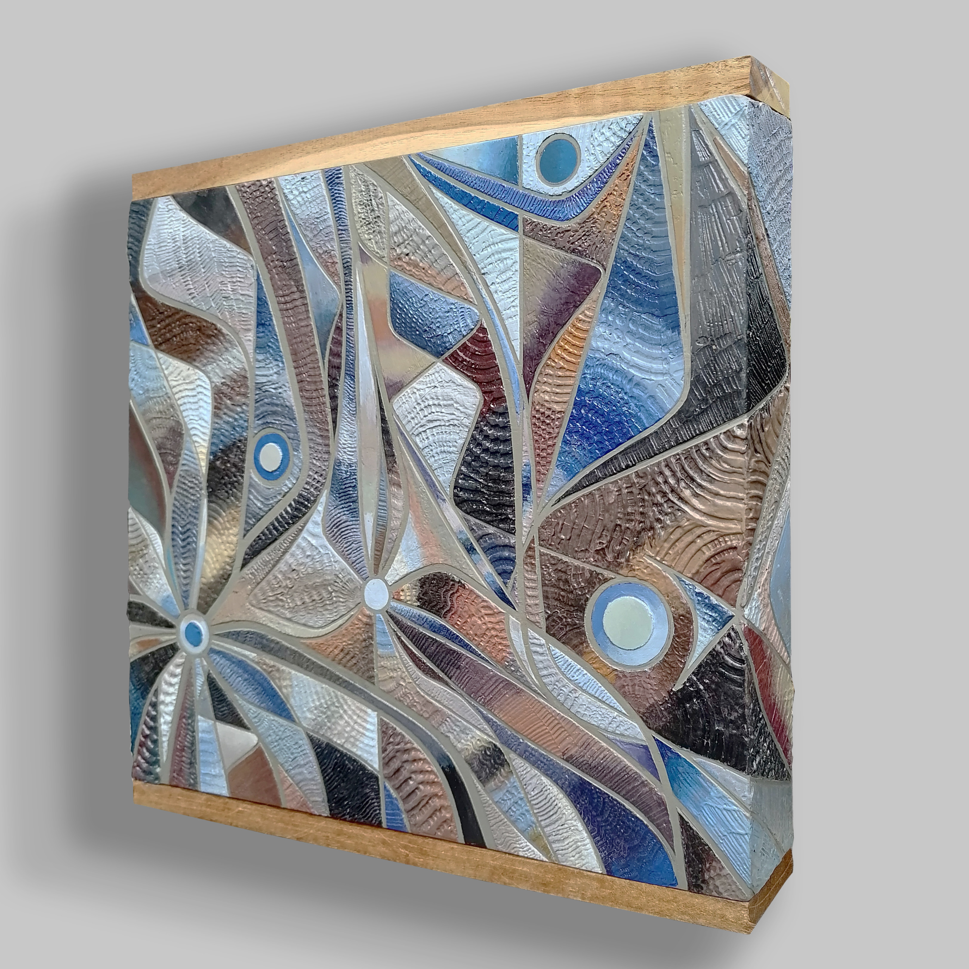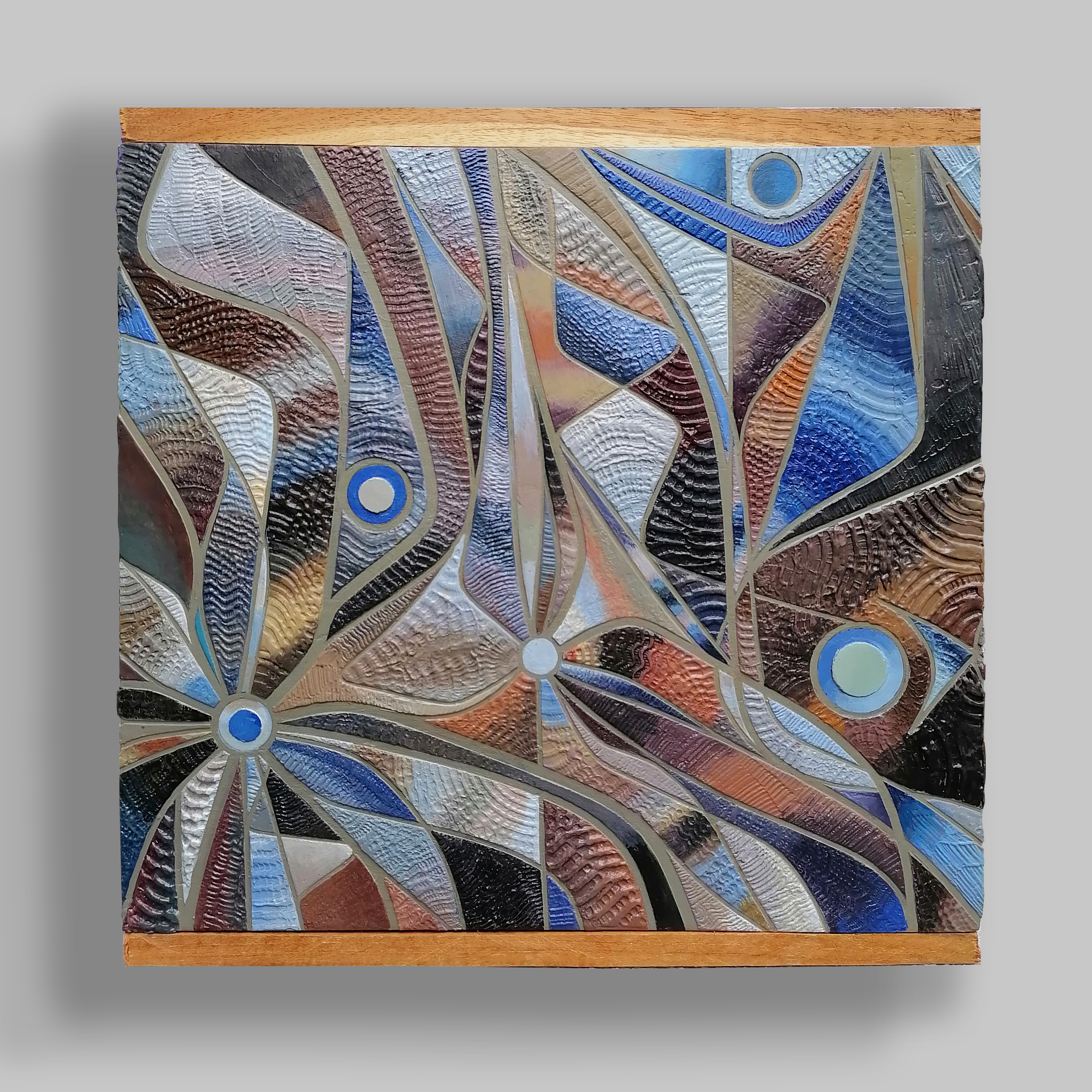🔴SOLD 12″X12″X1.5″ Acrylic and Modeling paste on Cypress panel with Teak Caps. This is the 4 of 4 in the Onyx series. This is part of a series of paintings based on Onyx stones combined with free form compositions.