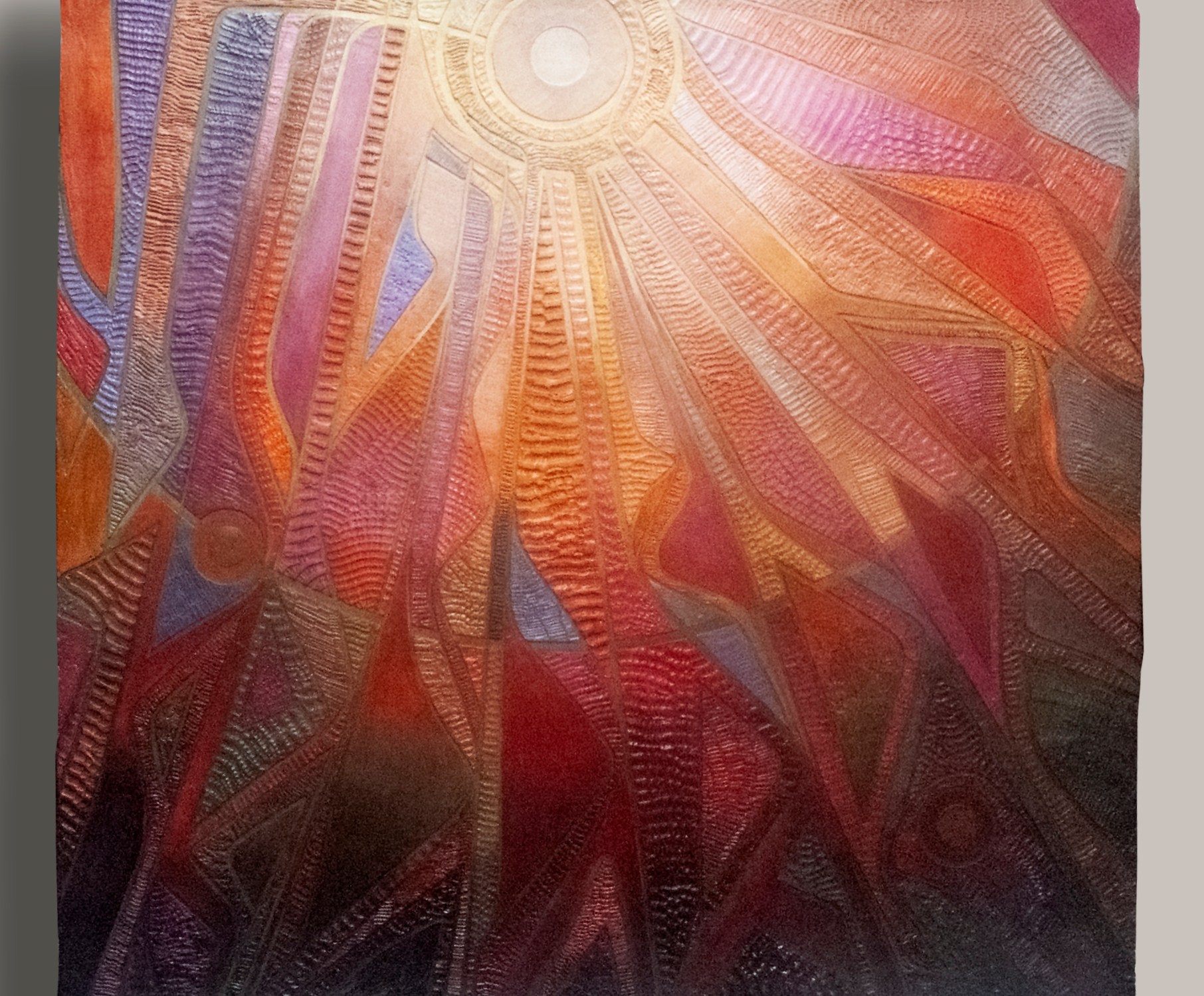 As the name implies beacon is evocative of a energy source or a guiding light in the abyss.Beacon is a radial geometry of a series of rays emanating from a central focal point interlaced by various elements of free form geometry